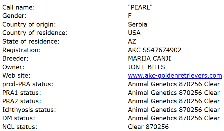 Pearl is full AKC Registered, Genetic Clear, DNA tested English Creme Golden Retriever girly. ❤️ She is so sweet and so gentle. Pearl loves kids and other dogs. She is so smart and so obedient. Pearl’s and her parents are from Serbia and come from Champion Lines. She is from a Super Fancy Breeder. She is also Kennel Club of Republic Serbia Registered. Pearl looks like a Show Champion. One of her sisters got AKC Championship Award in USA.