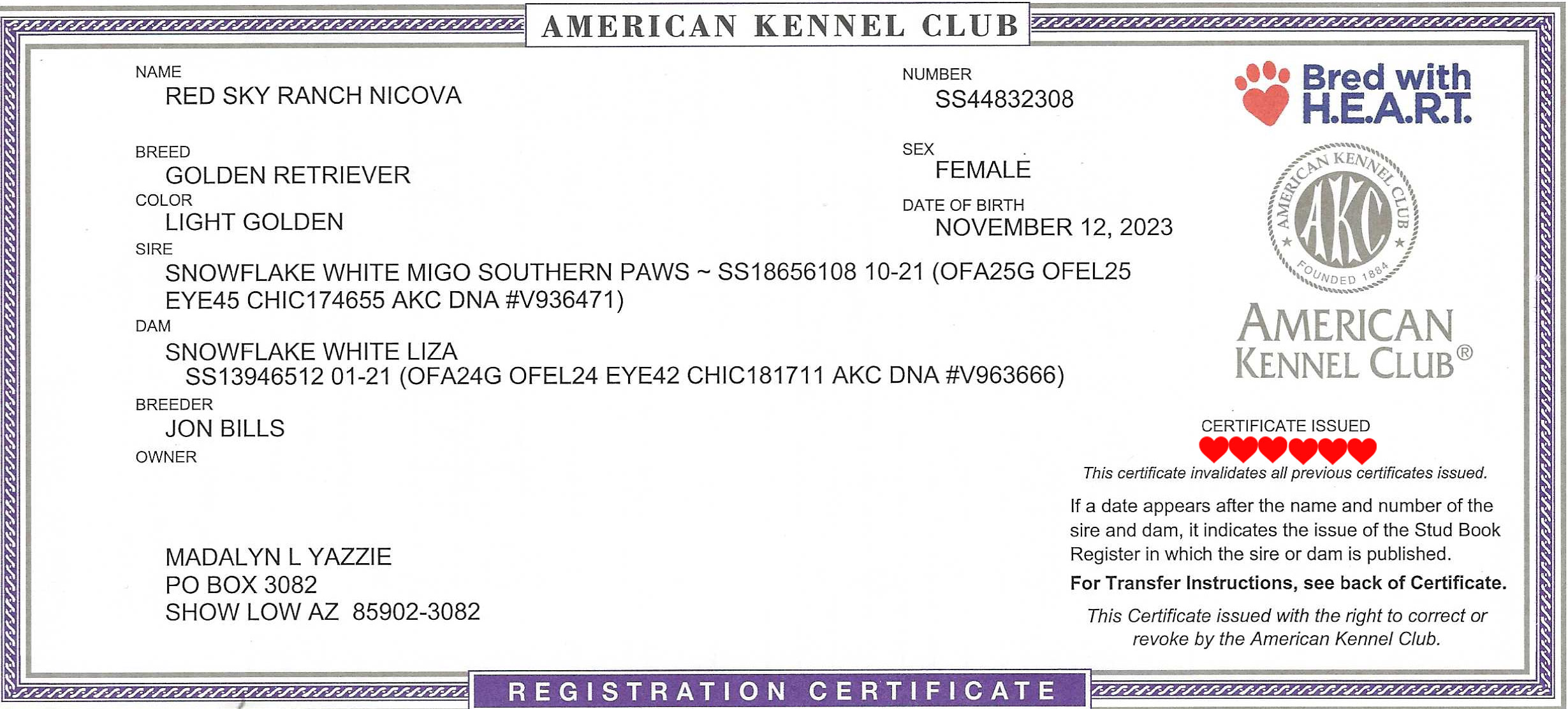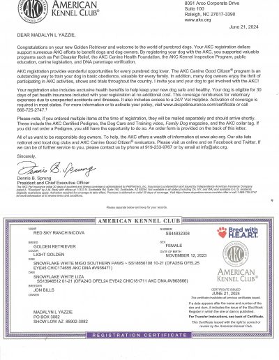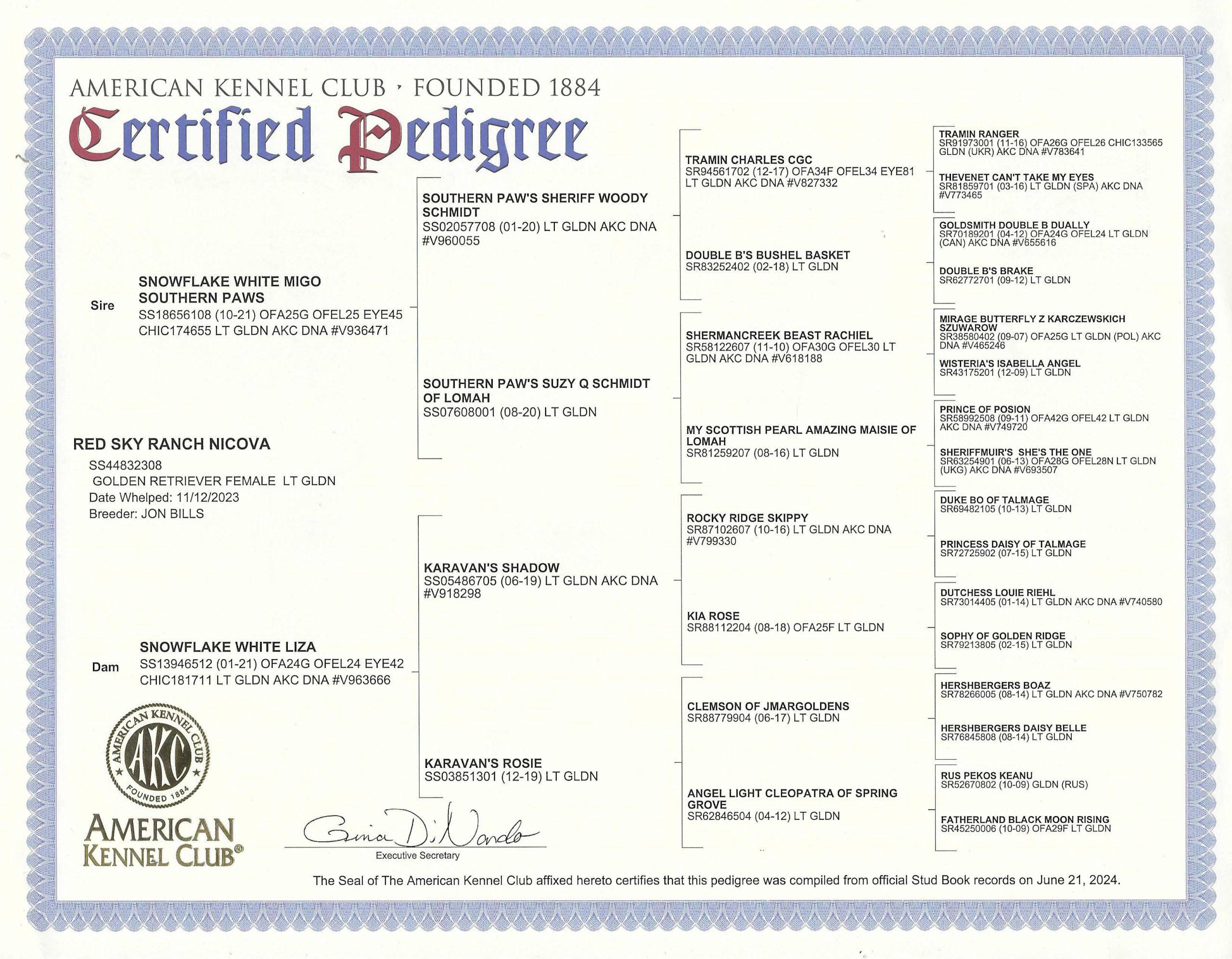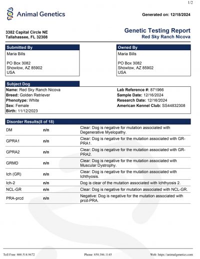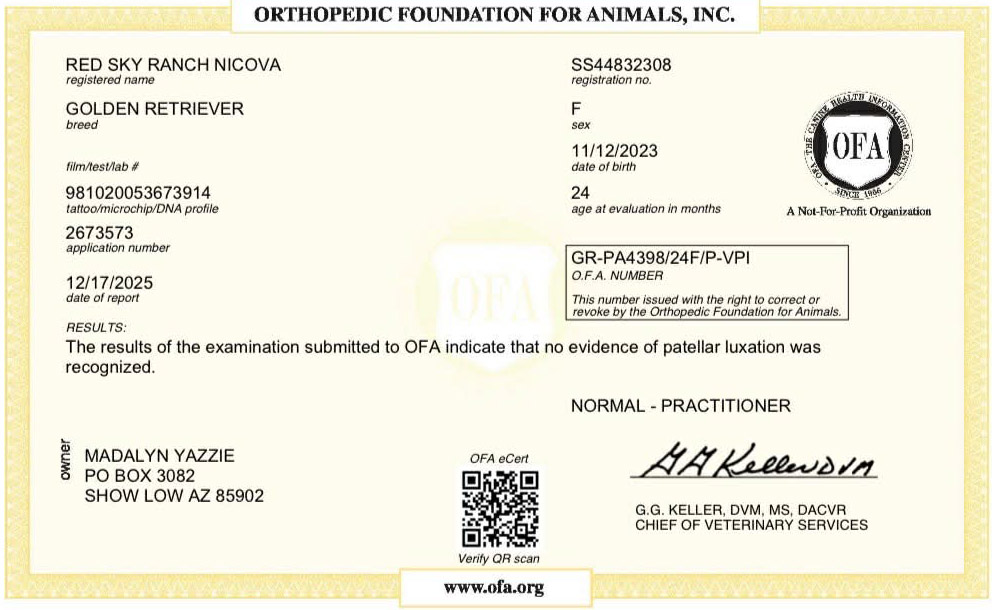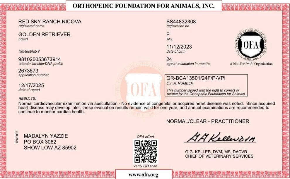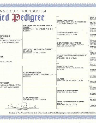 View Health, Pedigree, & Genetic Certificates Below Photos